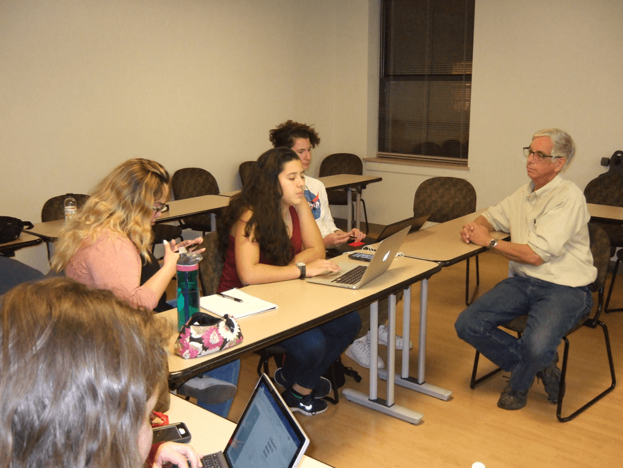 - Tom Hoehn of Transition Fort Collins mentoring students in Colorado State University’s Green Renters program. Photo courtesy of Janice Lynne.