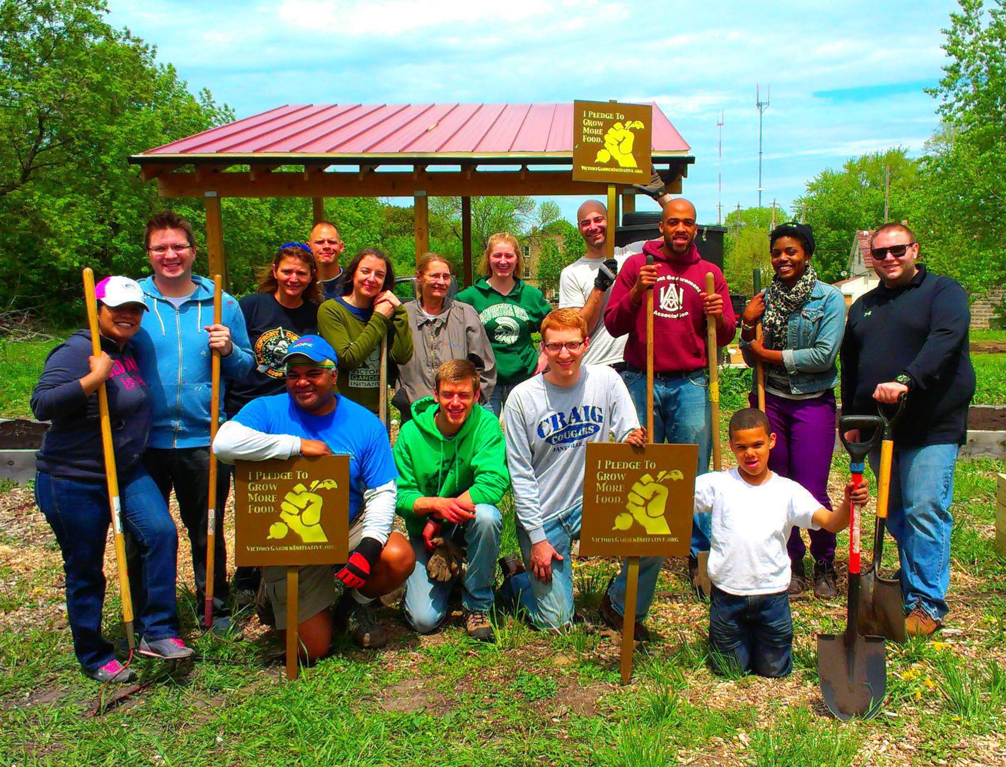 - Victory Garden Blitz volunteers celebrating a job well done.