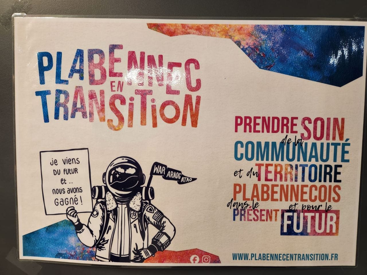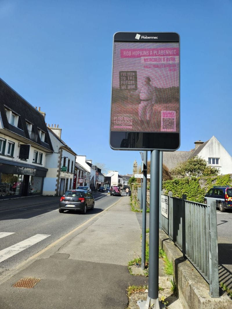 In it, Annaïg rides through the town, in full time traveller consume, holding a sign reading ‘I’ve been to the future. We won’ (in French). One of the results of the film was the forming of an active Transition group, Plabennec en Transition.