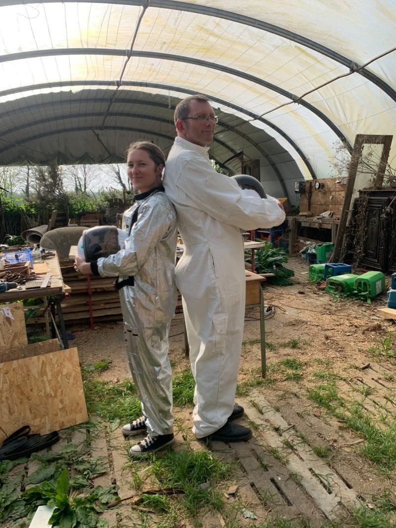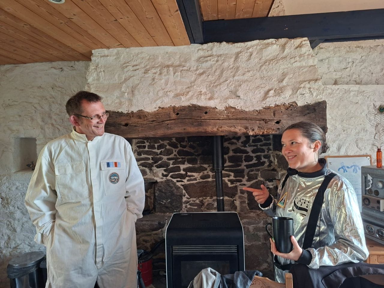 Now Annaïg is making the sequel to ‘Retour a Plabennec’, telling the story of how Plabennec en Transition organised around local elections as a way of bringing change. I spent the day in the town, on the hottest and most beautiful day of the year so far. Annaig and I spent the morning filming a time travel sequence which I can’t wait to see. We kept getting the giggles.