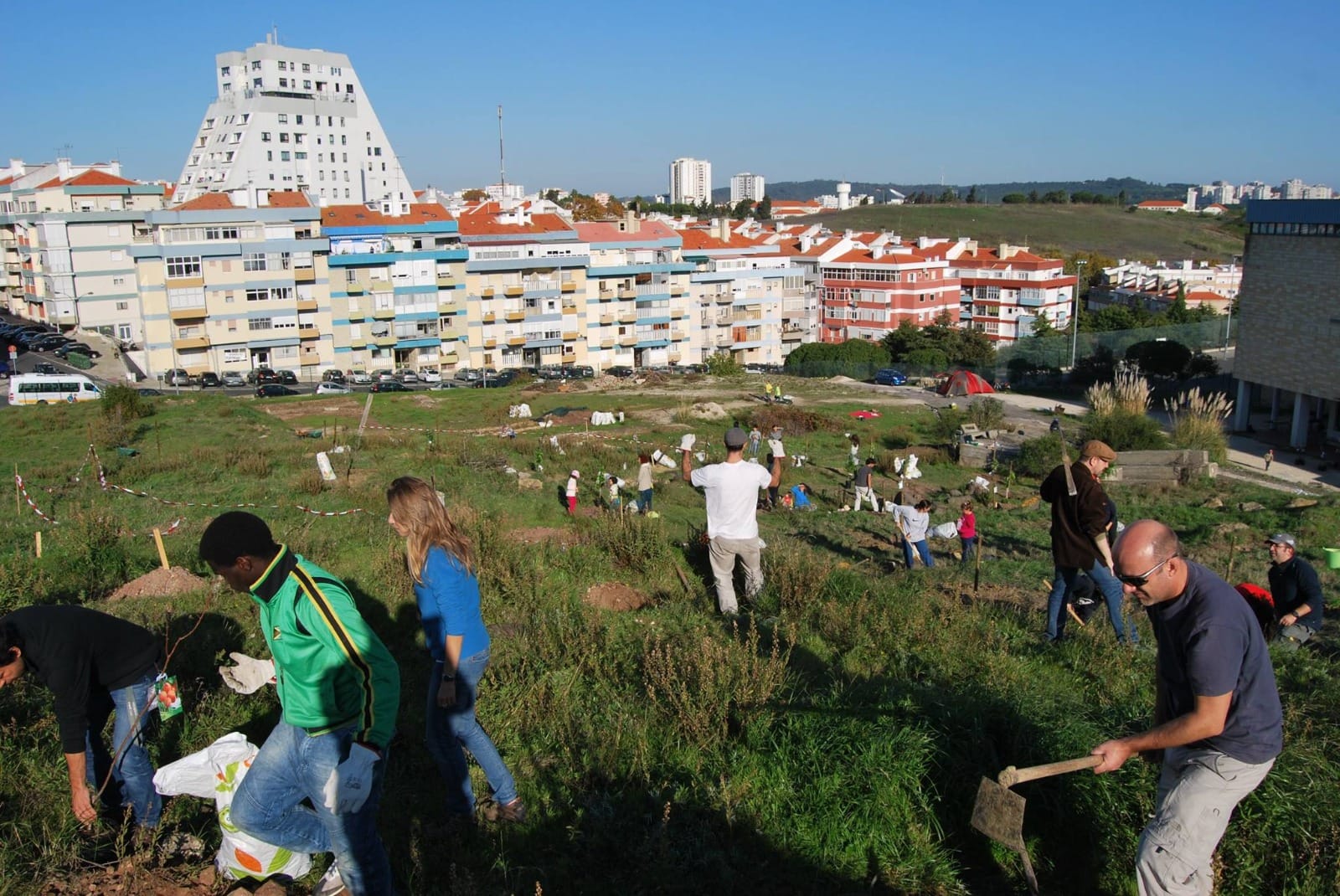 É em 2015 (ano zero deste projeto) que é lançada a primeira pedra da 2ª Fase: a comunidade local coloca “mãos à obra” e organiza uma grande ação para implementar o Pomar Comunitário, com a plantação de 60 árvores de fruto, com 14 espécies diferentes: a ideia era garantir fruta diferente ao longo de todo o ano. No ano seguinte, 2016, a comunidade local volta para o terreno, desta vez para a implantação do Bosquete Mediterrânico. Em ambas as iniciativas, o suporte financeiro foi conseguido através de um programa de apadrinhamento de árvores por parte da comunidade local. Nestes anos multiplicaram-se as iniciativas e envolvendo escolas (do sector público e privado), agrupamentos de escuteiros, associações e comunidade local, através de ajudadas e atividades de educação/ sensibilização ambiental, totalizando cerca de 1400 participantes.