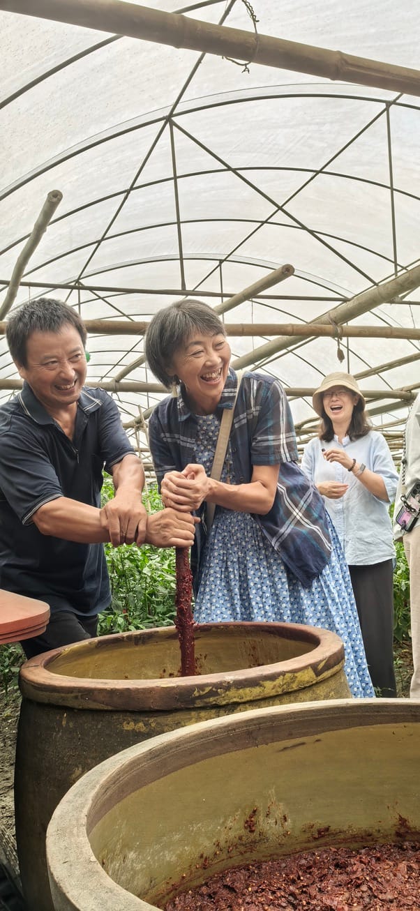 This was a unique farm run by a professor from Sichuan University who studies the relationship between microorganisms and soil while growing crops. Though many farms once existed in this village, government policies led most farmers to relocate to cities. This farm is one of only four remaining. Here, a couple, volunteers, and a Sichuan University professor cultivate crops and deliver produce to members in Chengdu's urban areas who have signed contracts. Sichuan is famous for doubanjiang (chili bean paste), and this farm also produces and sells organic doubanjiang.