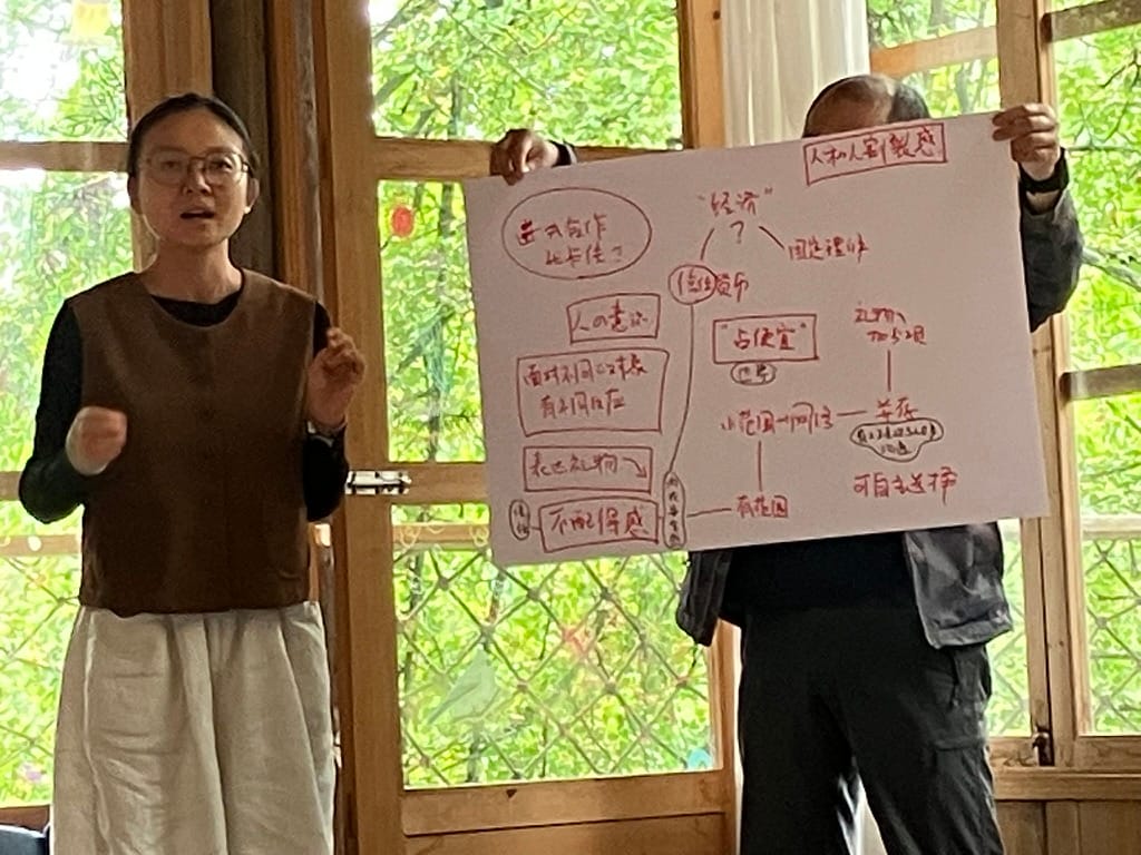 Dongfang Yijing Residential Community: We visited this apartment community in Chengdu, home to 204 households, which has practiced self-governance for 19 years. We went to hear about their initiative to cut ties with management, cleaning, and security companies, taking over management and cleaning themselves. Management fees collected from residents funded volunteers who transformed shared spaces into beautiful biotopes and gardens. Through various connections, they obtained scrap materials, processed them for reuse, and gradually became skilled enough to even sell their creations. Funds previously paid to management companies were redirected to their activities, generating profits. Recently, they consistently operate in the black and return surplus funds to residents—a truly remarkable initiative.