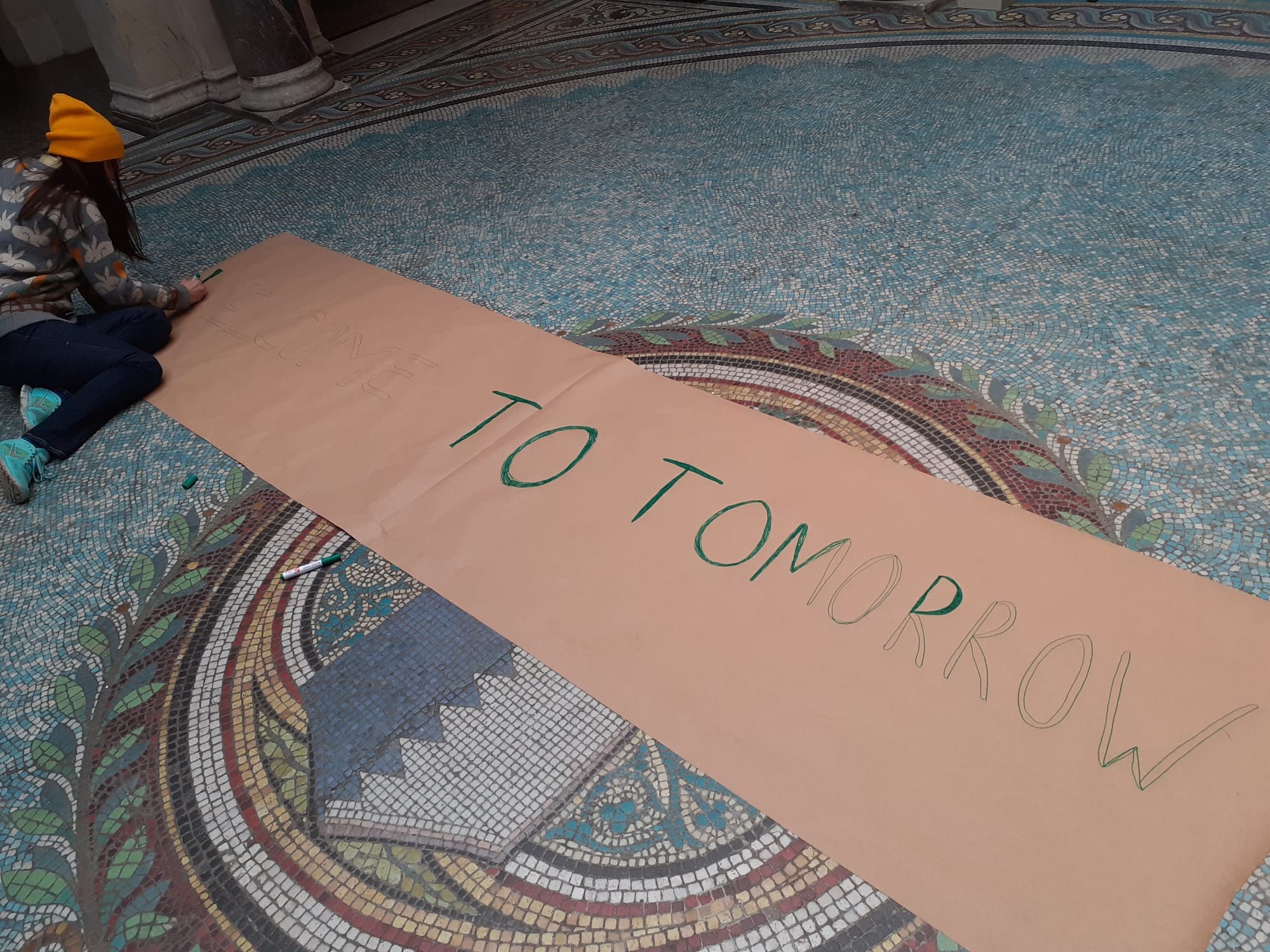 “I’m not sure where I first heard about Pop Up Tomorrow, but I’m fairly sure it would have been on social media. I was cautious about committing to it at first, as it was immediately after two weeks of Extinction Rebellion and I wasn’t sure I’d have the energy for it, but I decided it would be the perfect ending to that fortnight of action”. Greta Hughson, participant.
