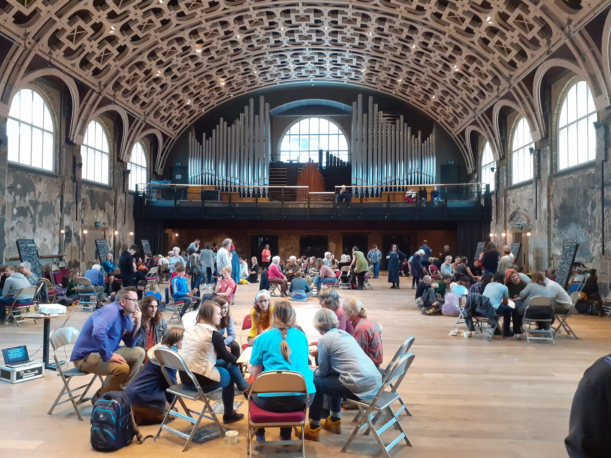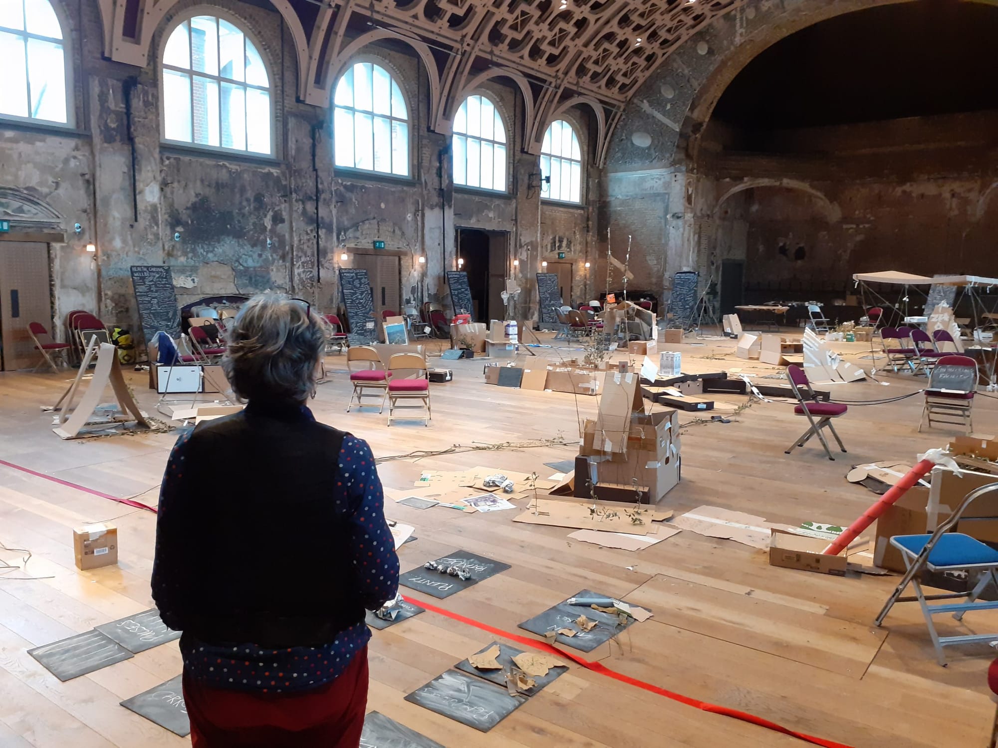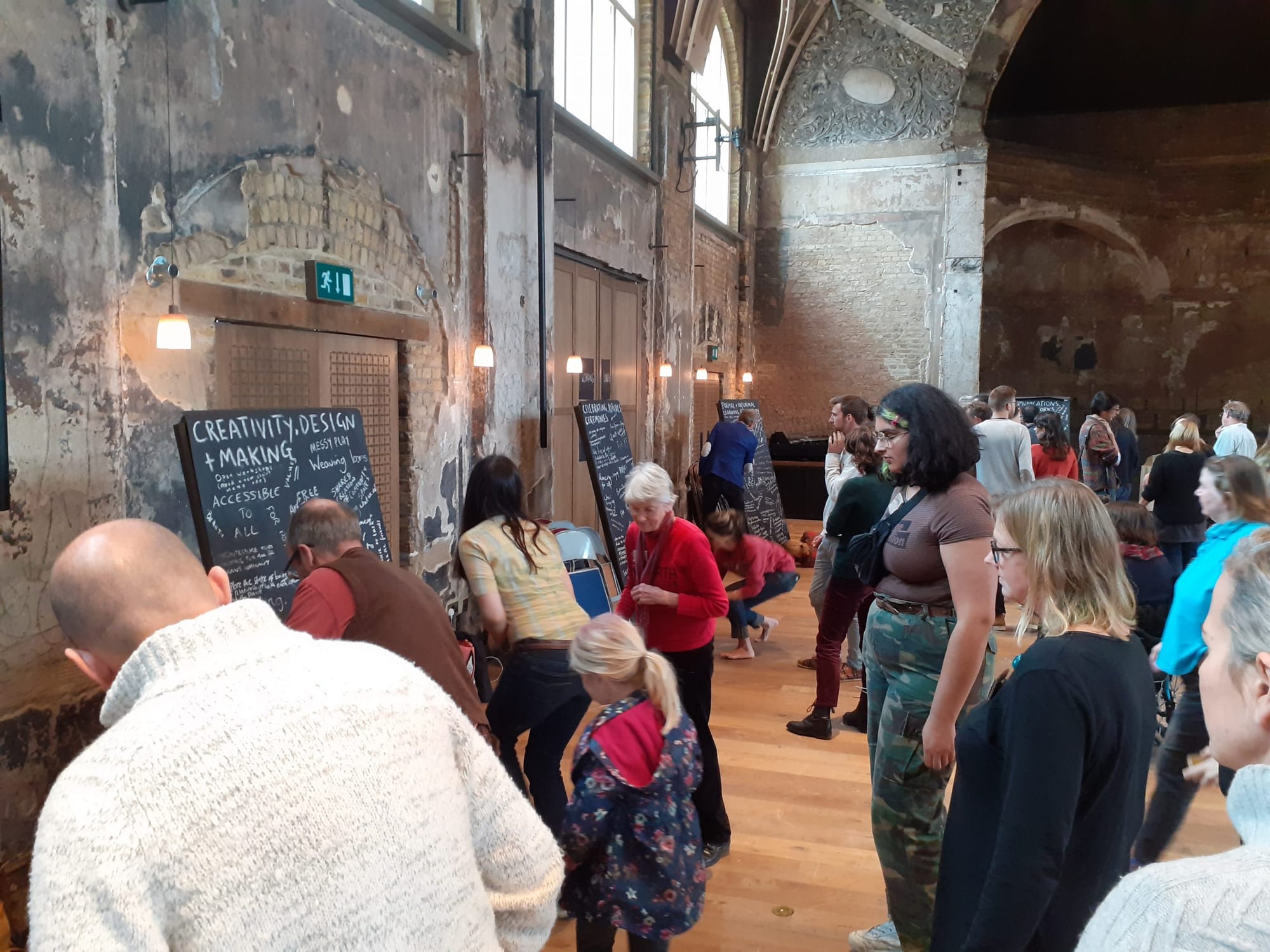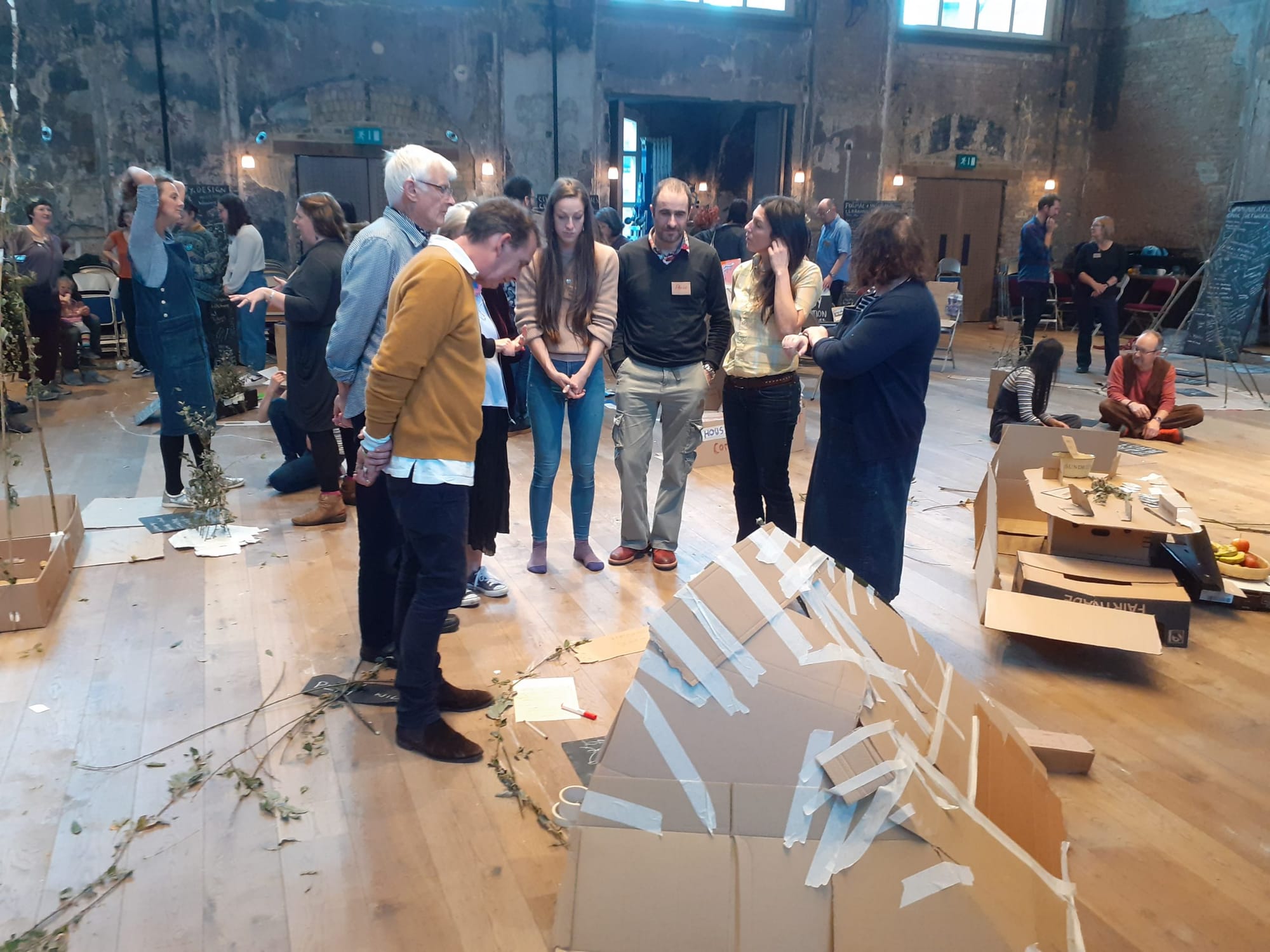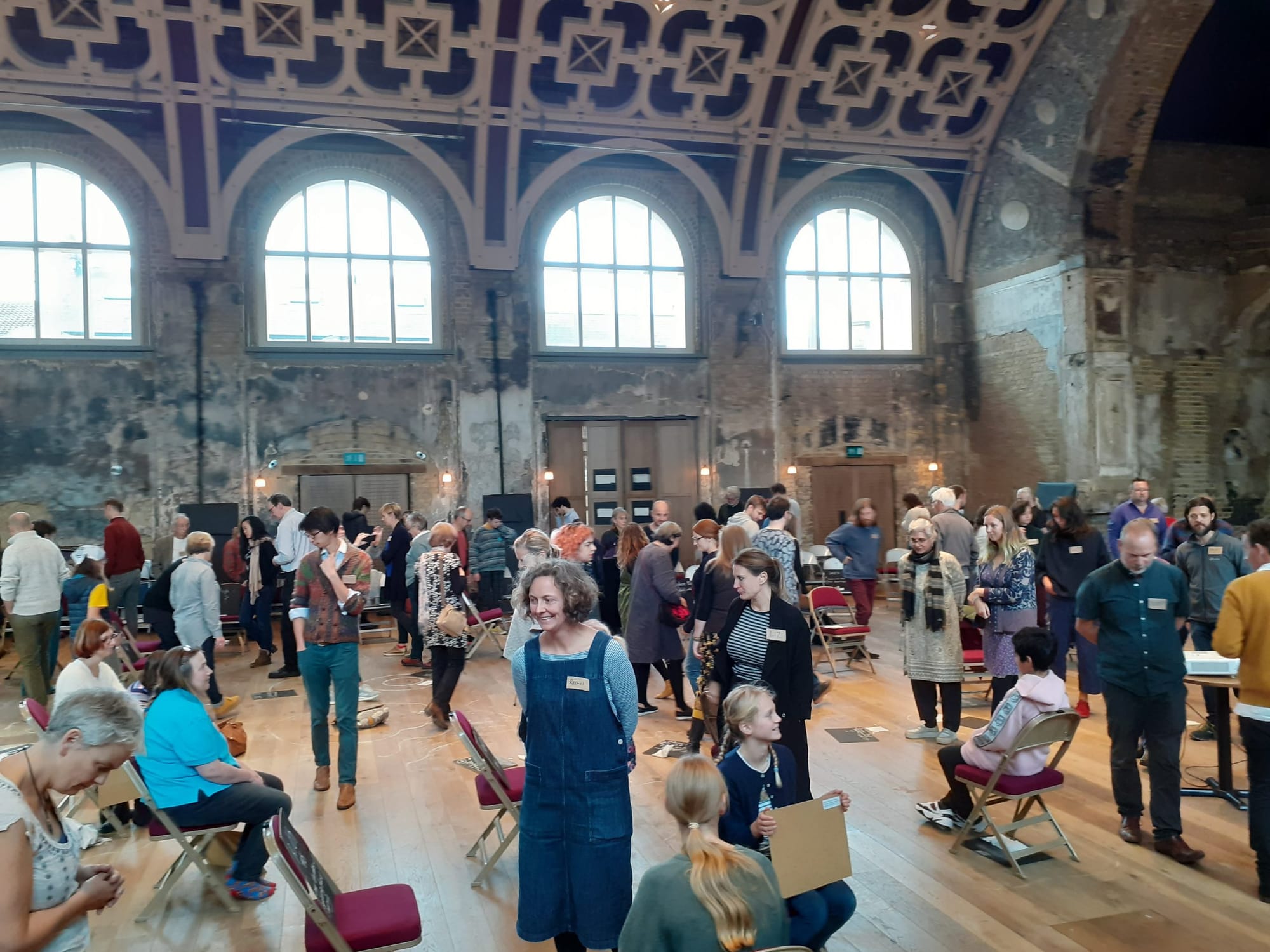 As part of this we collaborated with Encounters Arts and members of the Transition Hub – London & SE to create an event in London. On October 20th 2019 we hosted ‘Pop Up Tomorrow’ at Battersea Arts Centre – a day-long interactive, immersive event focused around ‘Transition Town Anywhere’, a process that had first been done in the same room back in 2012.