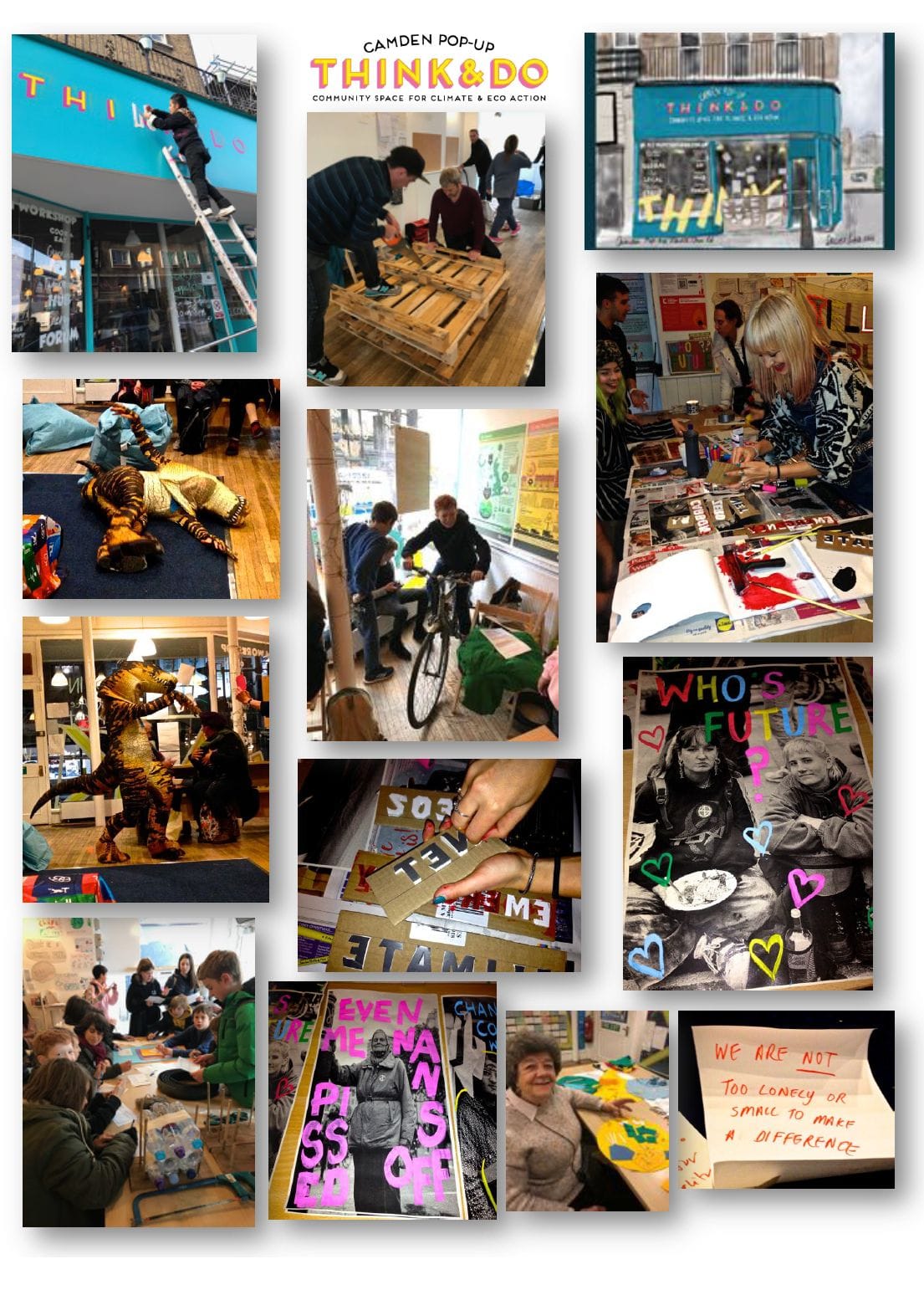 The idea was this: all councils adopting a climate emergency resolution should set up local, participatory “Think and Do” solution centres; where citizens could engage with experts, each other and the council. Georgia Gould, Camden’s Council Leader, present at the May talk, mulled over and elaborated this idea with her Strategy Team as one way to follow up the recommendations of Camden’s Citizens Assembly. The idea of a high street based “pop up” that would deliver the actions suggested by the Assembly was born.