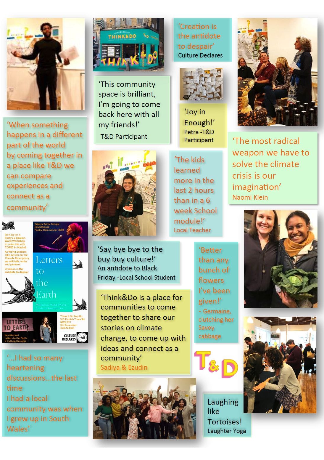 We have already agreed a trial Think and Do at a local library in May. We are currently in discussion with local schools to have climate action Think and Do summits. We have been contacted by universities and arts organisations keen to host pop ups of their own. We are also developing a starter kit to share our experiences and help others get going with their own Think and Do.